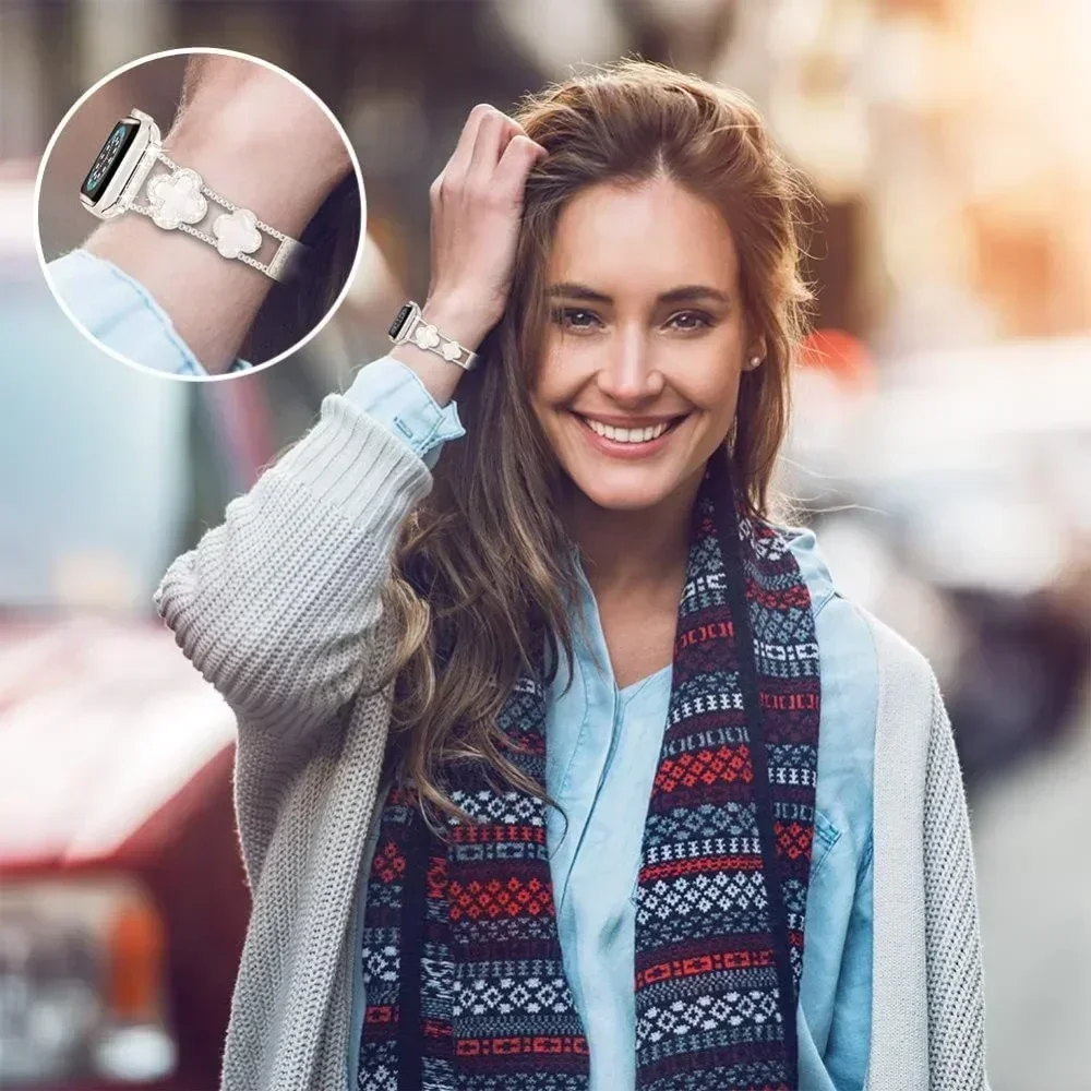 Elevate your Apple Watch with this elegant Diamond Clover Strap, featuring shimmering clover-shaped charms set in a refined metal chain. Designed to blend sophistication with everyday comfort, it adds a touch of luxury to any outfit. Perfect for both casual wear and special occasions, this strap transforms your watch into a timeless accessory.